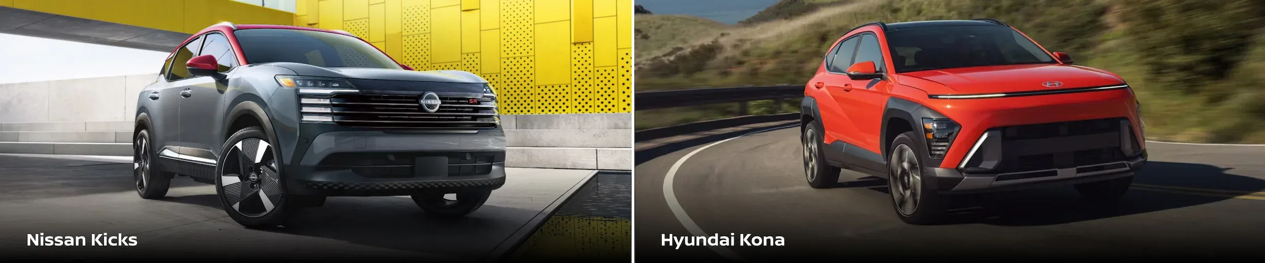 When it comes to subcompact SUV options on the market, it's only natural to want to see a Nissan Kicks vs. Hyundai Kona comparison. These two highly accessible crossovers offer fantastic all-gas MPG ratings, high-value features that provide safety and comfort on the road, and enough space to get groceries, luggage, and more to their destination.